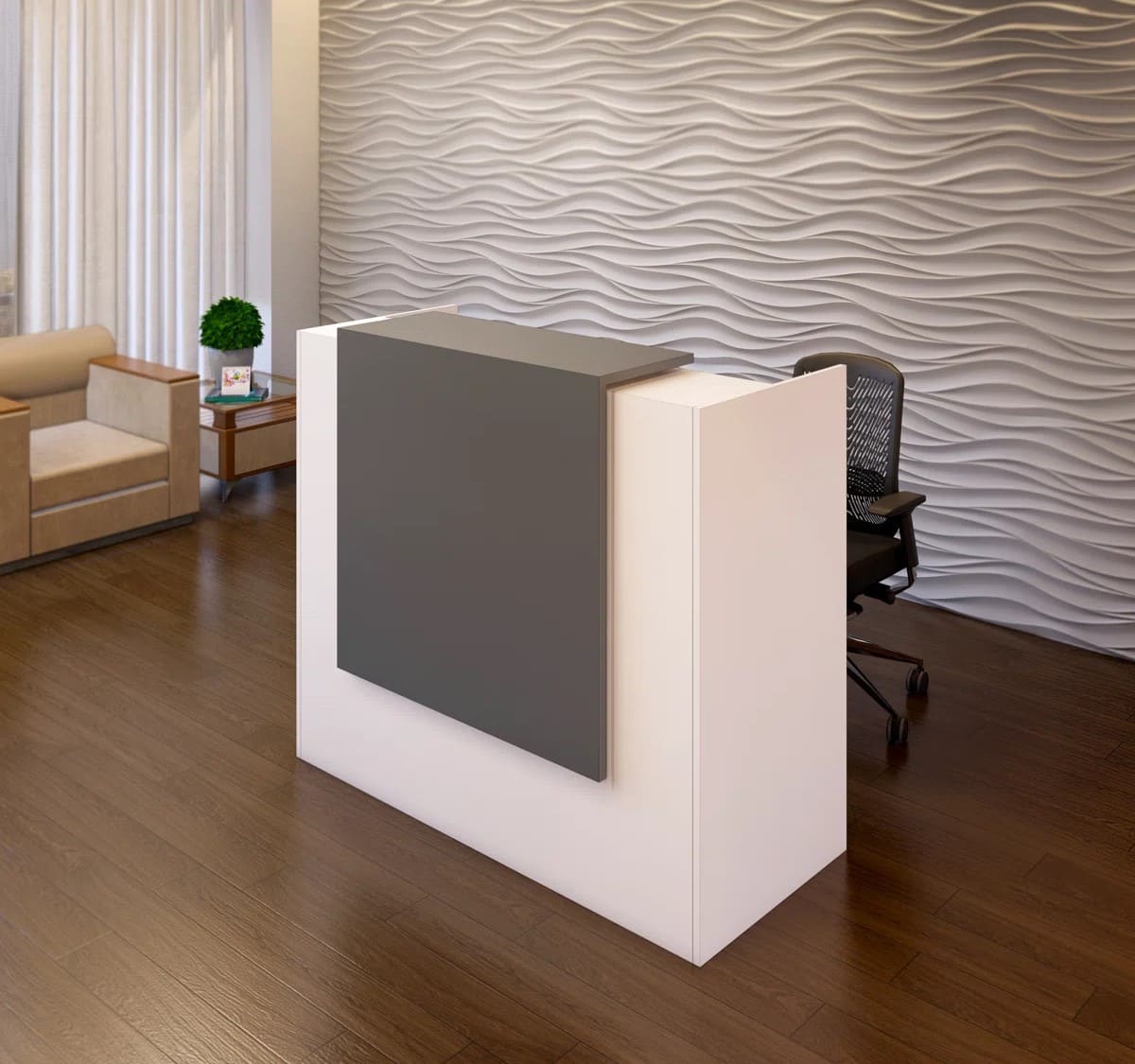 میز پیشخوان اداری مدرن ام دی اف دو رنگ سفید طوسی | رنگ بندی دارد