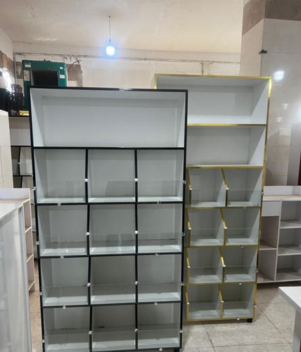 قفسه فروشگاهی و اداری و ویترین فروشگاهی ام دی اف مدرن رنگ بندی دارد ضمانت نامه دارد