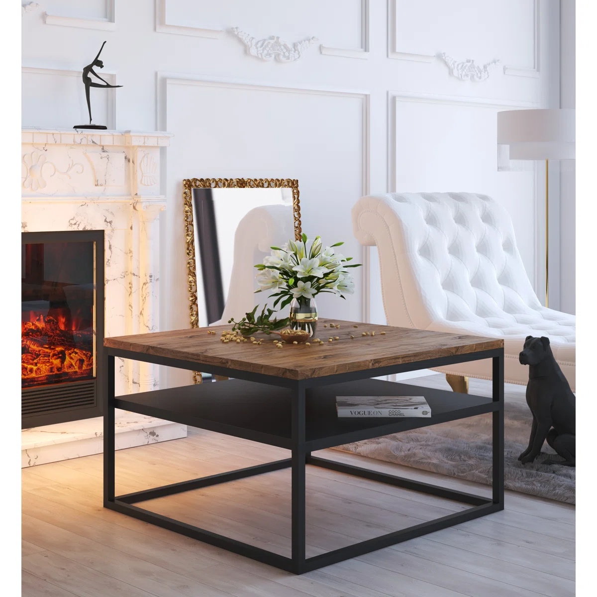 جلو مبلی روستیک با پایه فلزی طرح مربعی دو رنگ مشکی قهوه ای | رنگبندی دارد