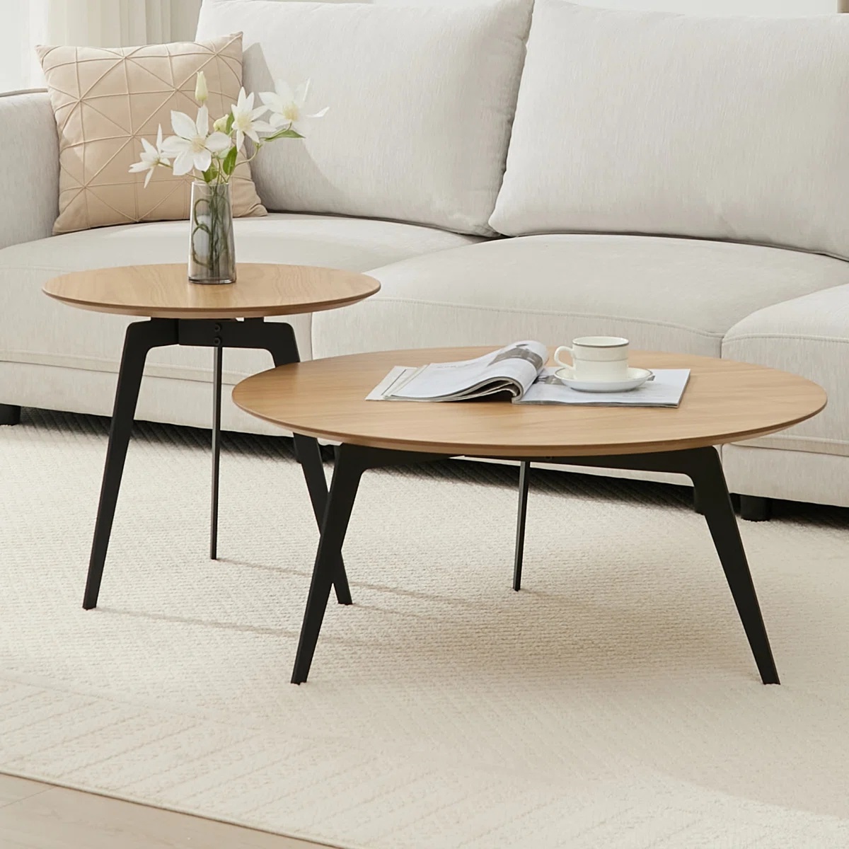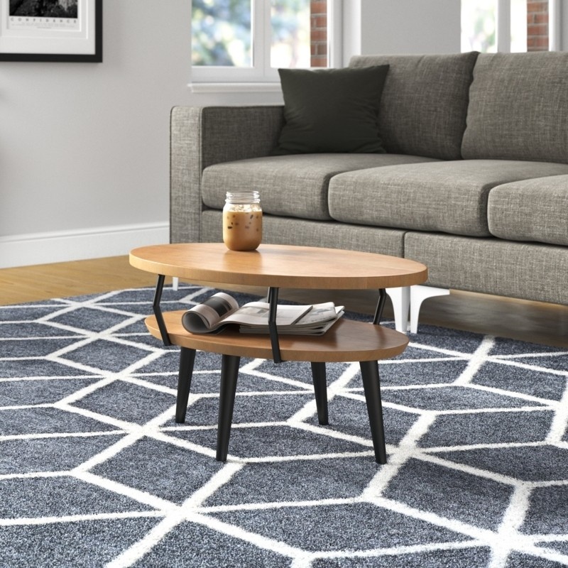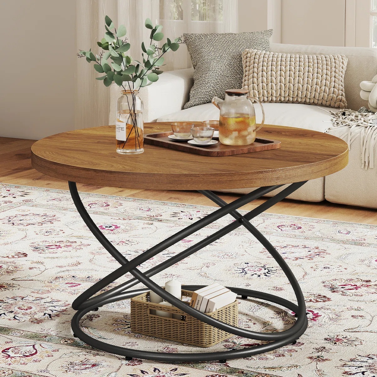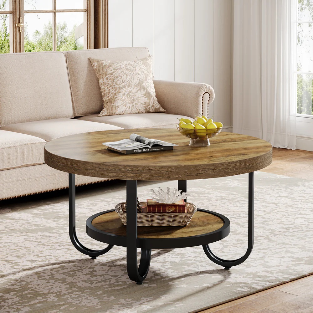 جلو مبلی مدرن چوب و فلز طرح دایره دو طبقه رنگ قهوه ای روشن | رنگبندی دارد
