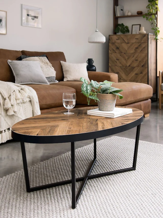 جلو مبلی مدرن چوب و فلز طرخ بیضی شکل رنگ قهوه ای تیره | رنگبندی دارد