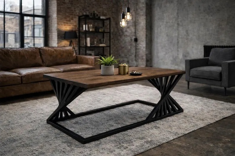 جلو مبلی روستیک چوب و فلز دو رنگ قهوه ای مشکی | رنگبندی دارد
