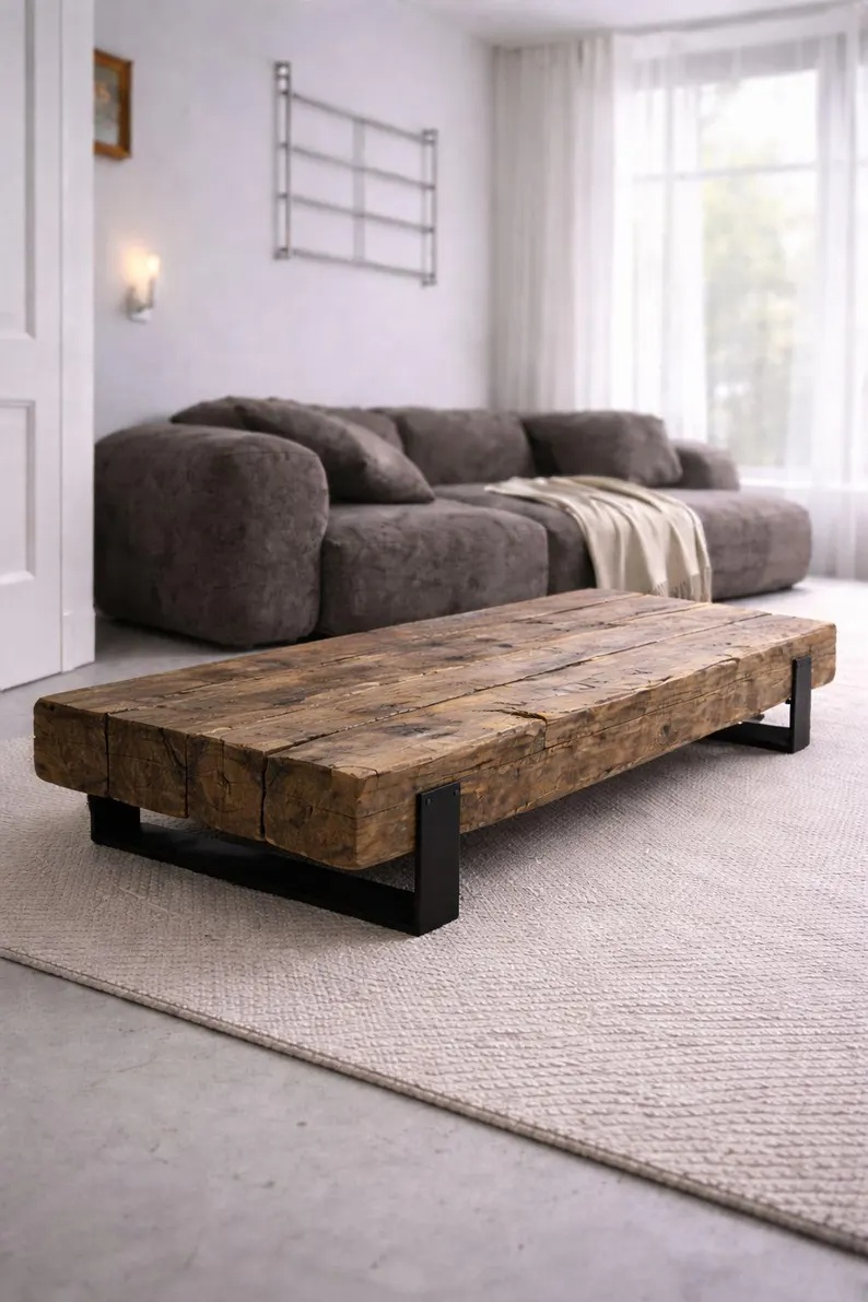 جلو مبلی روستیک چوب و فلز رنگ قهوه ای تیره | رنگبندی دارد