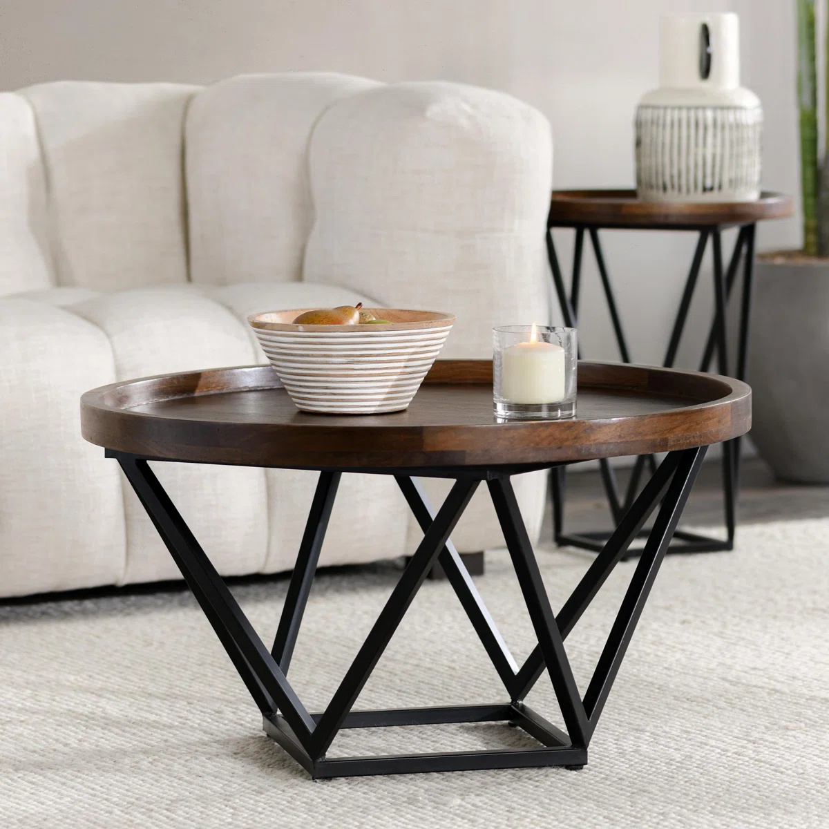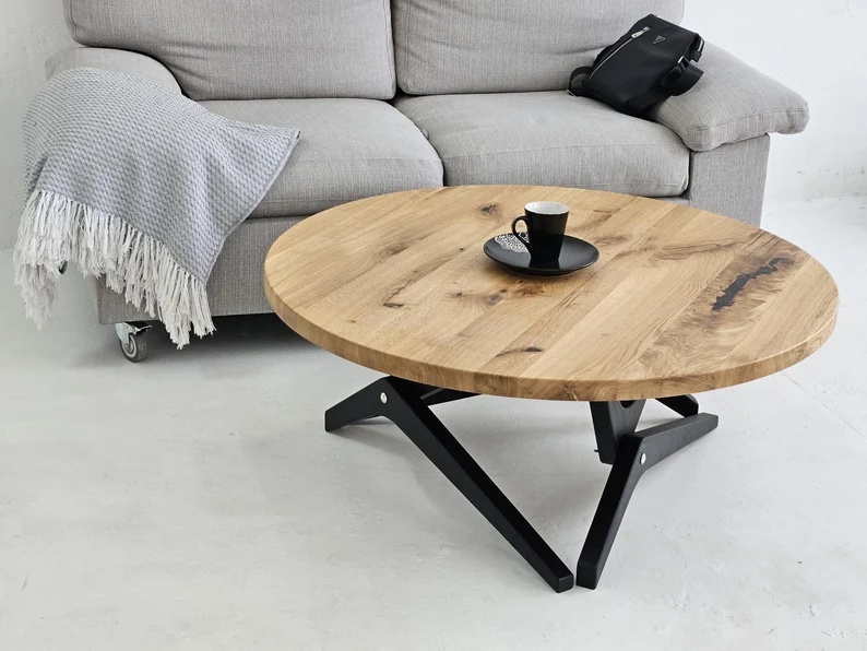 جلو مبلی مدرن دایره ای چوب و فلز رنگ قهوه ای تیره | رنگبندی دارد