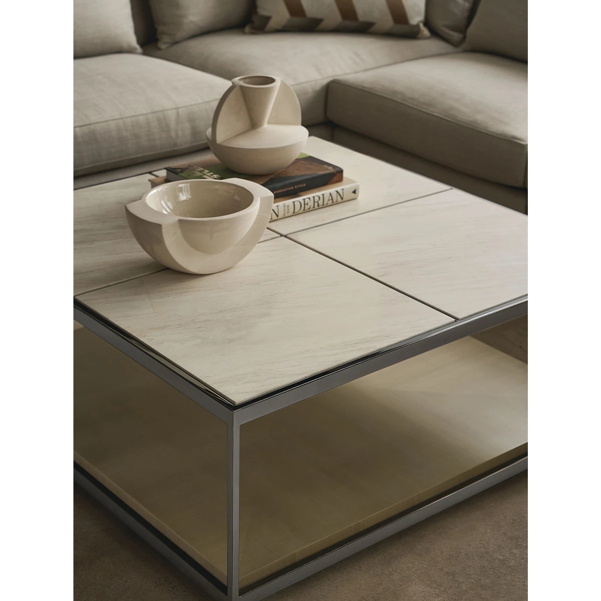 جلو مبلی مدرن ترکیب چوب و فلز رنگ طوسی | رنگبندی دارد