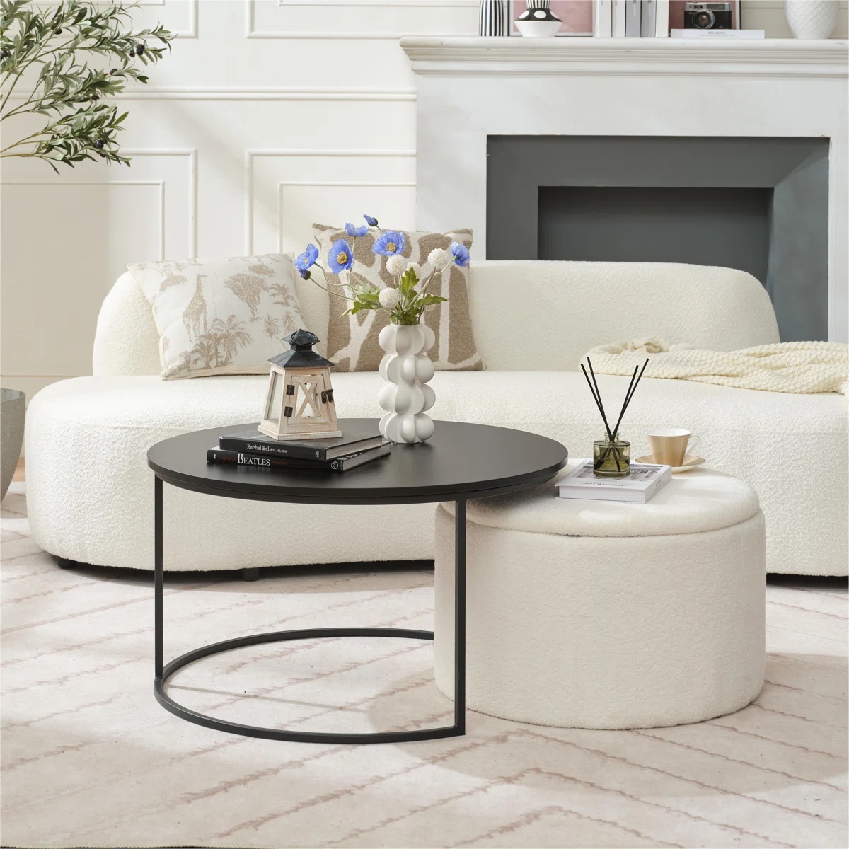 جلو مبلی مدرن چوب و فلز دو طبقه دایره ای دو رنگ سفید مشکی | رنگبندی دارد