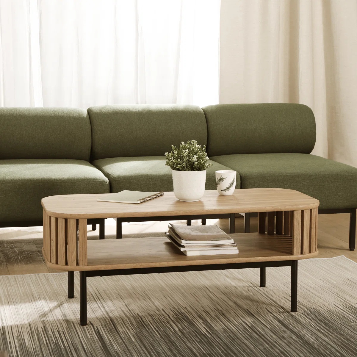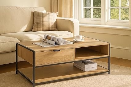 جلو مبلی مدرن و مینمال ترکیب چوب و فلز رنگ بلوطی | رنگبندی دارد