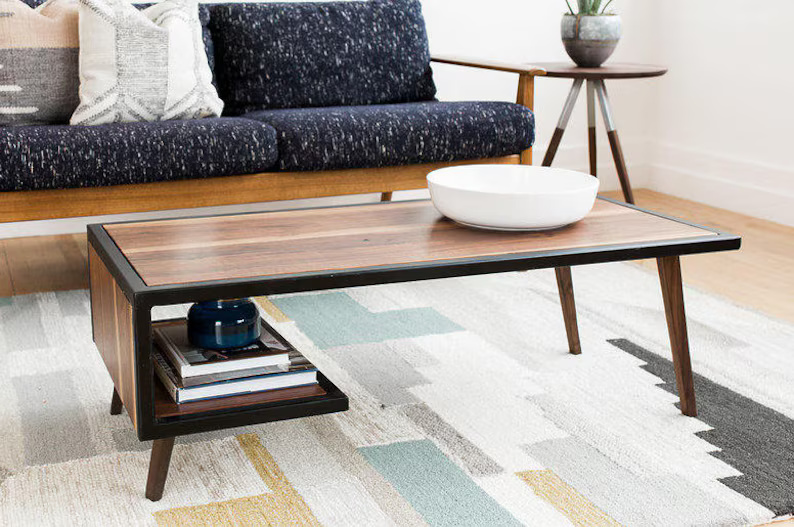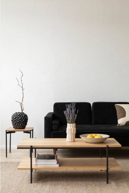جلو مبلی مینیمال و ساده ترکیب چوب و فلز دو طبقه رنگ مشکی مات | رنگبندی دارد