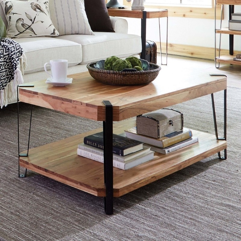 جلو مبلی روستیک ترکیب چوب و فلز دو طبقه رنگ قهوه ای تیره | رنگبندی دارد