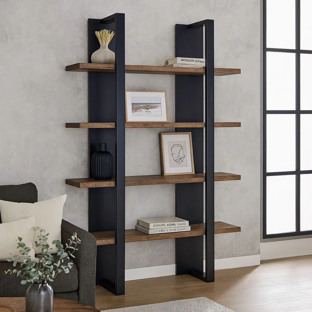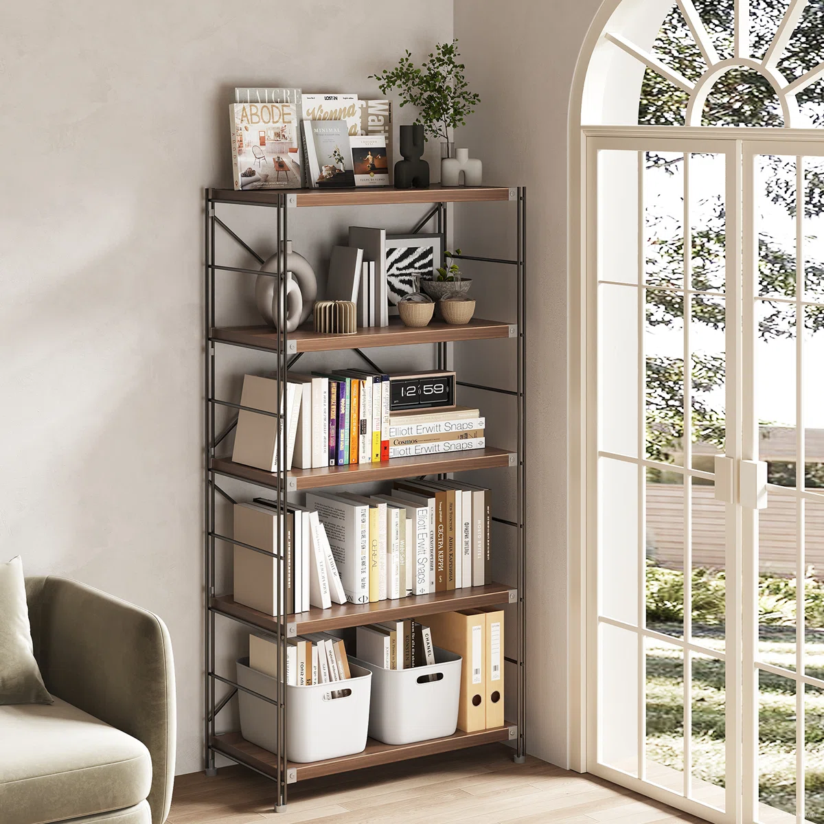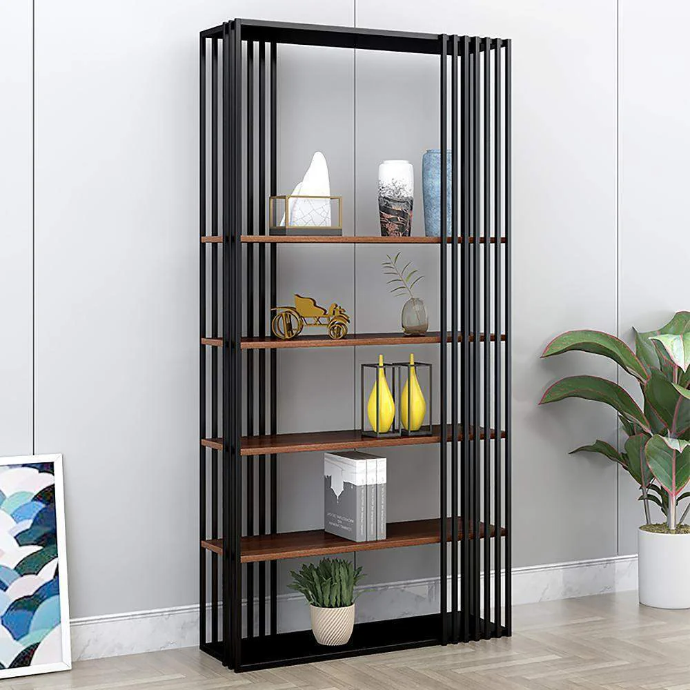 کتابخانه مدرن ترکیب ام دی اف و فلز 5 طبقه رنگ قهوه ای تیره | رنگ بندی دارد