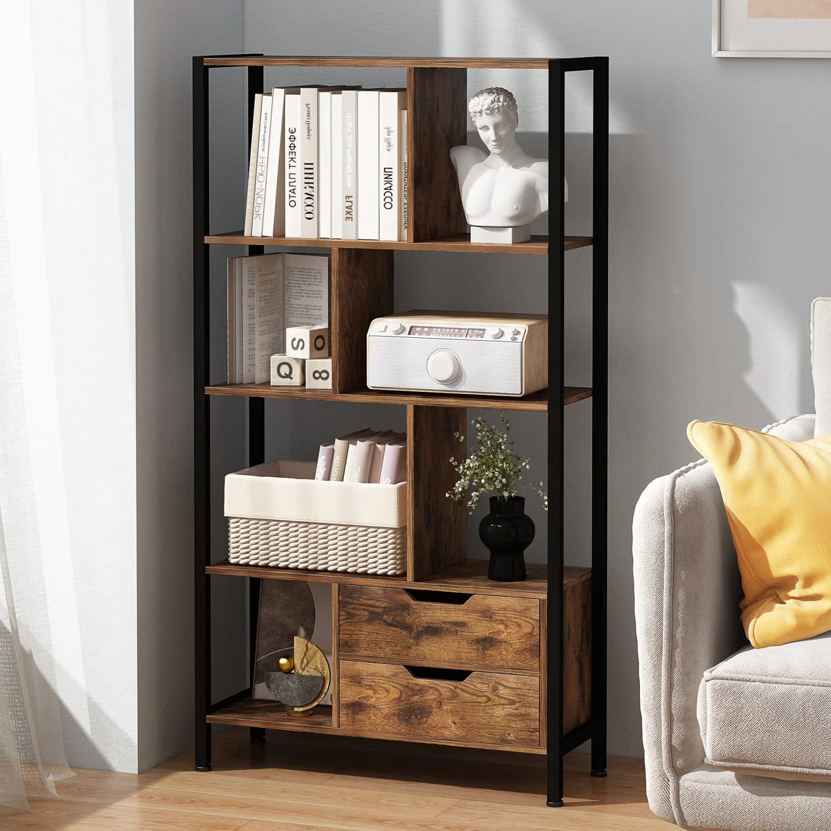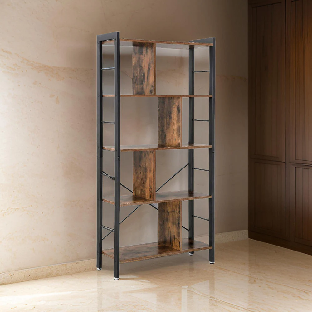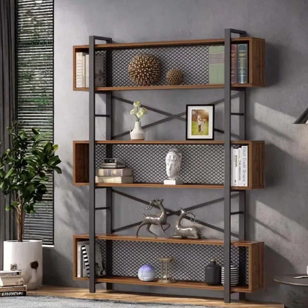 کتابخانه مدرن ترکیب ام دی اف و فلز 5 طبقه طرح دار رنگ قهوه ای تیره | رنگ بندی دارد
