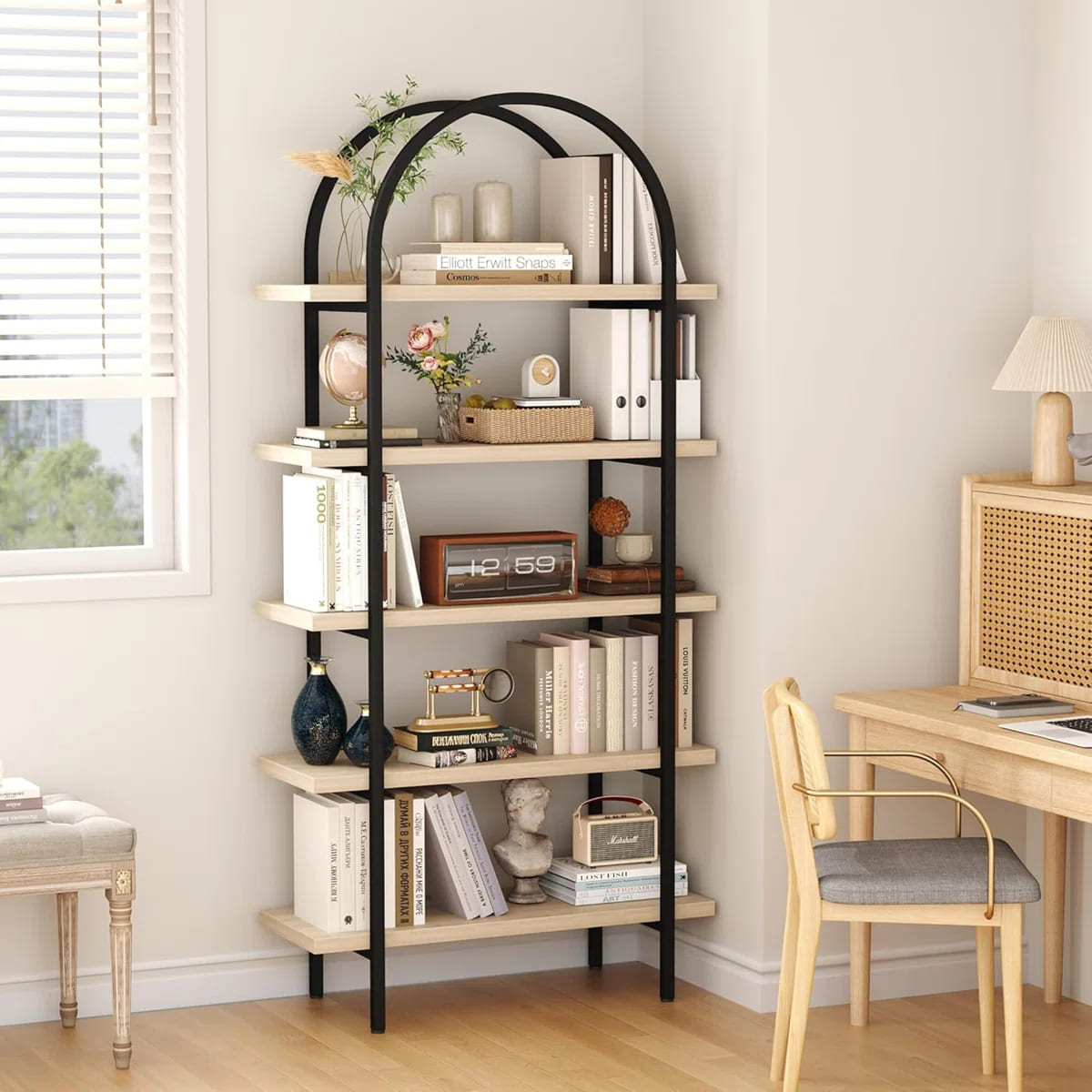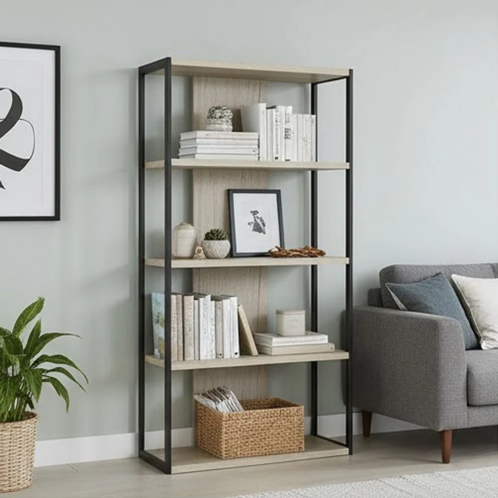 کتابخانه مدرن ترکیب ام دی اف و فلز 5 طبقه رنگ قهوه ای روشن | رنگ بندی دارد