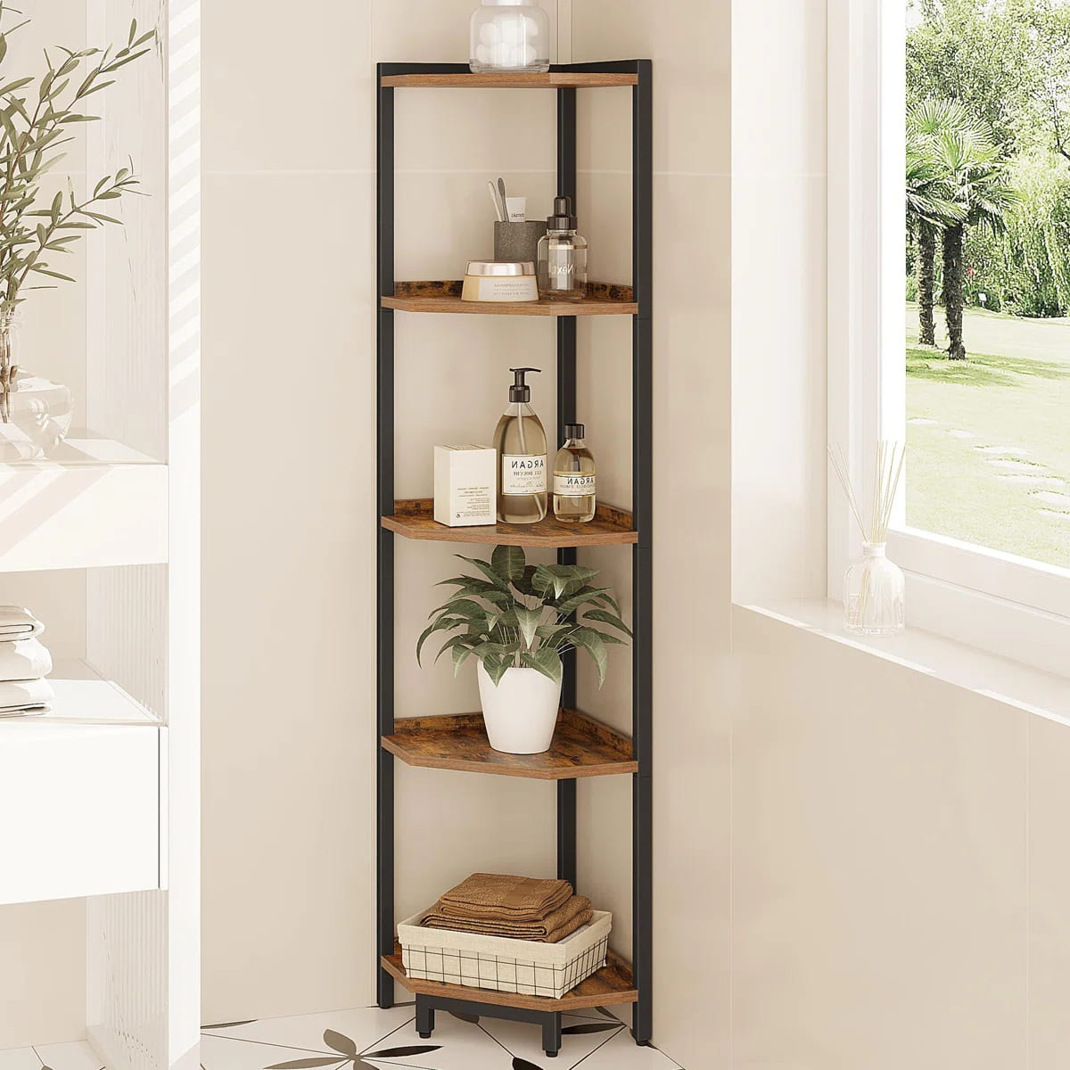 کتابخانه مدرن گوشه ای ترکیب ام دی اف و فلز 4 طبقه رنگ قهوه ای تیره | رنگ بندی دارد