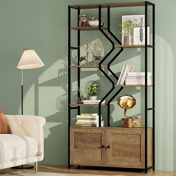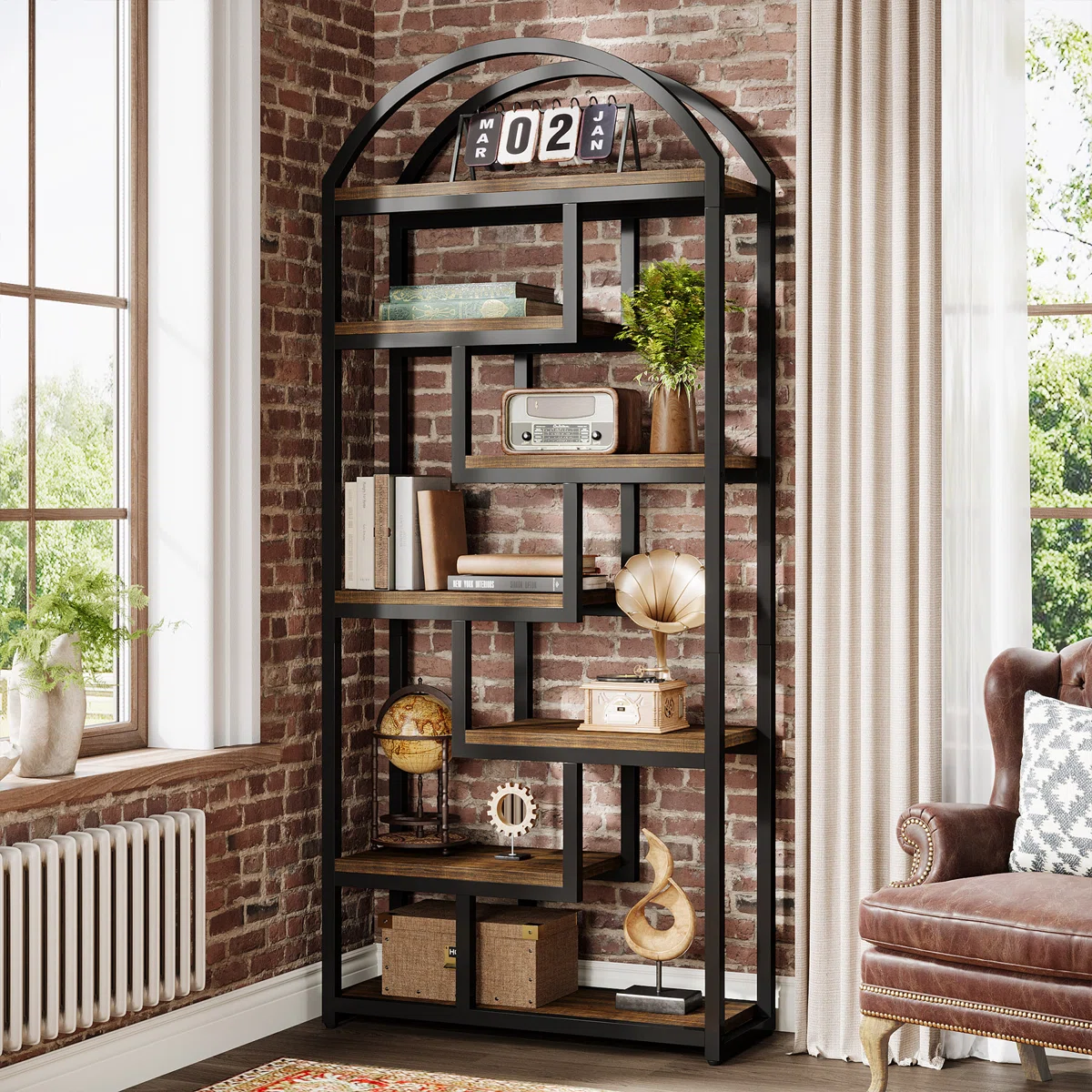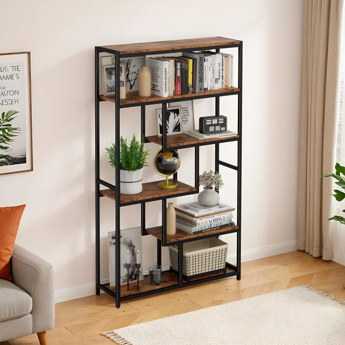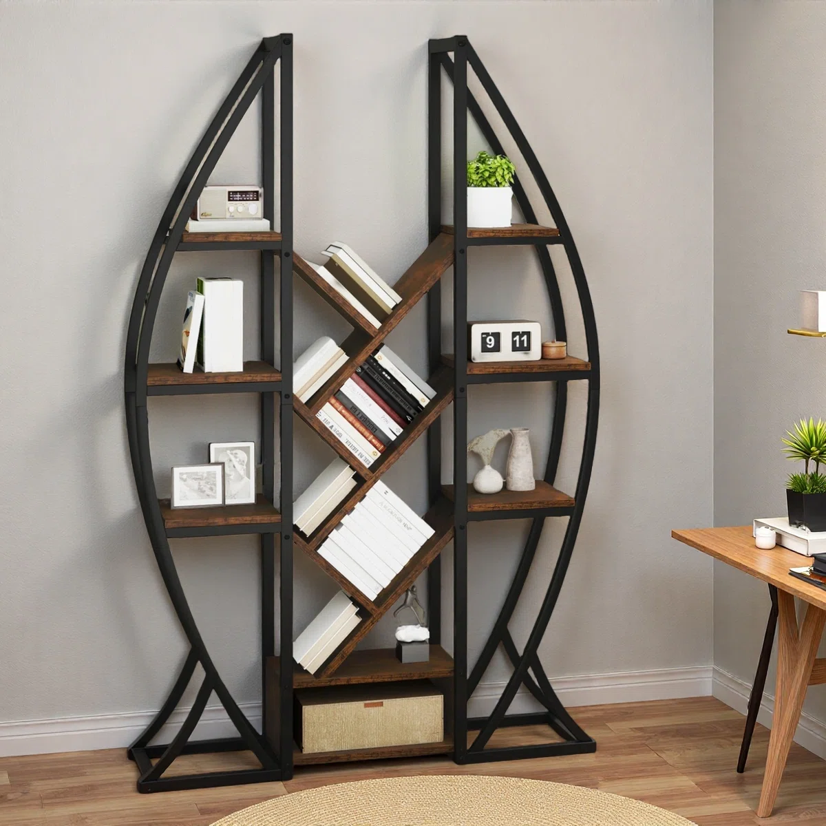کتابخانه مدرن ترکیب ام دی اف و فلز 8 طبقه طرح دار رنگ قهوه ای تیره | رنگ بندی دارد