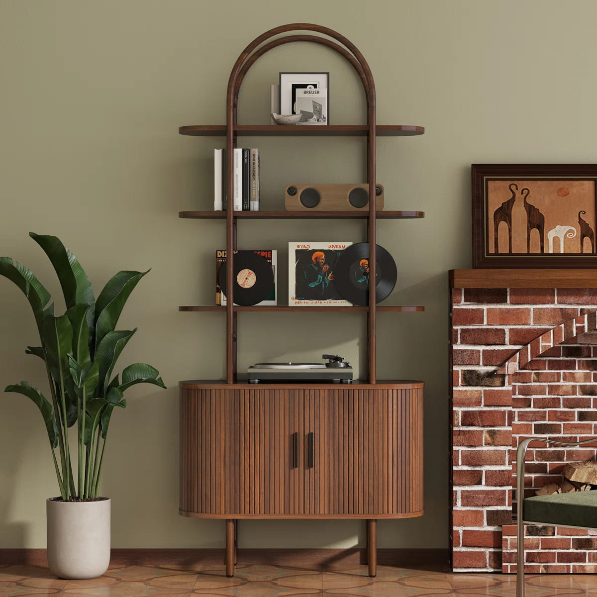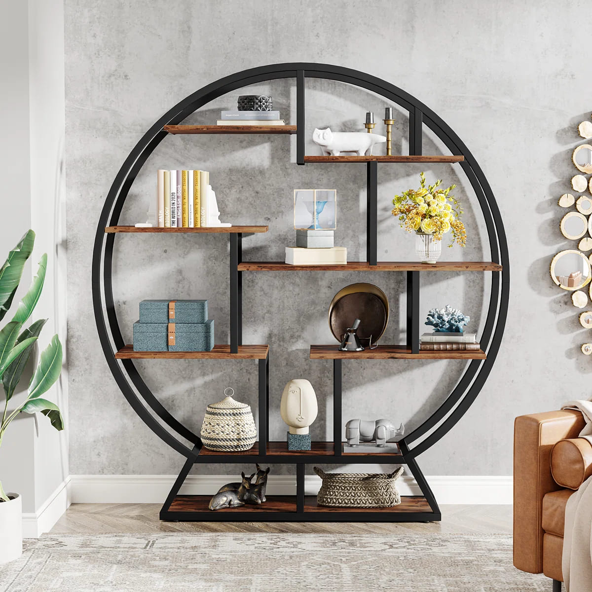 کتابخانه مدرن ترکیب ام دی اف و فلز 5 طبقه طرح دایره رنگ قهوه ای تیره | رنگ بندی دارد