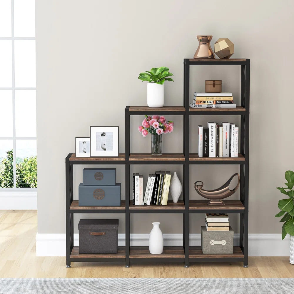 کتابخانه مدرن ترکیب ام دی اف و فلز چهارده طبقه رنگ قهوه ای تیره | رنگ بندی دارد