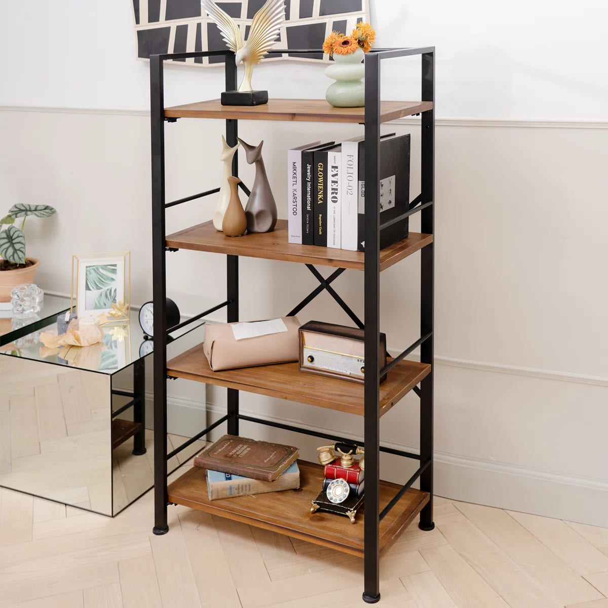 کتابخانه مدرن ترکیب ام دی اف و فلز 4 طبقه رنگ قهوه ای تیره | رنگ بندی دارد