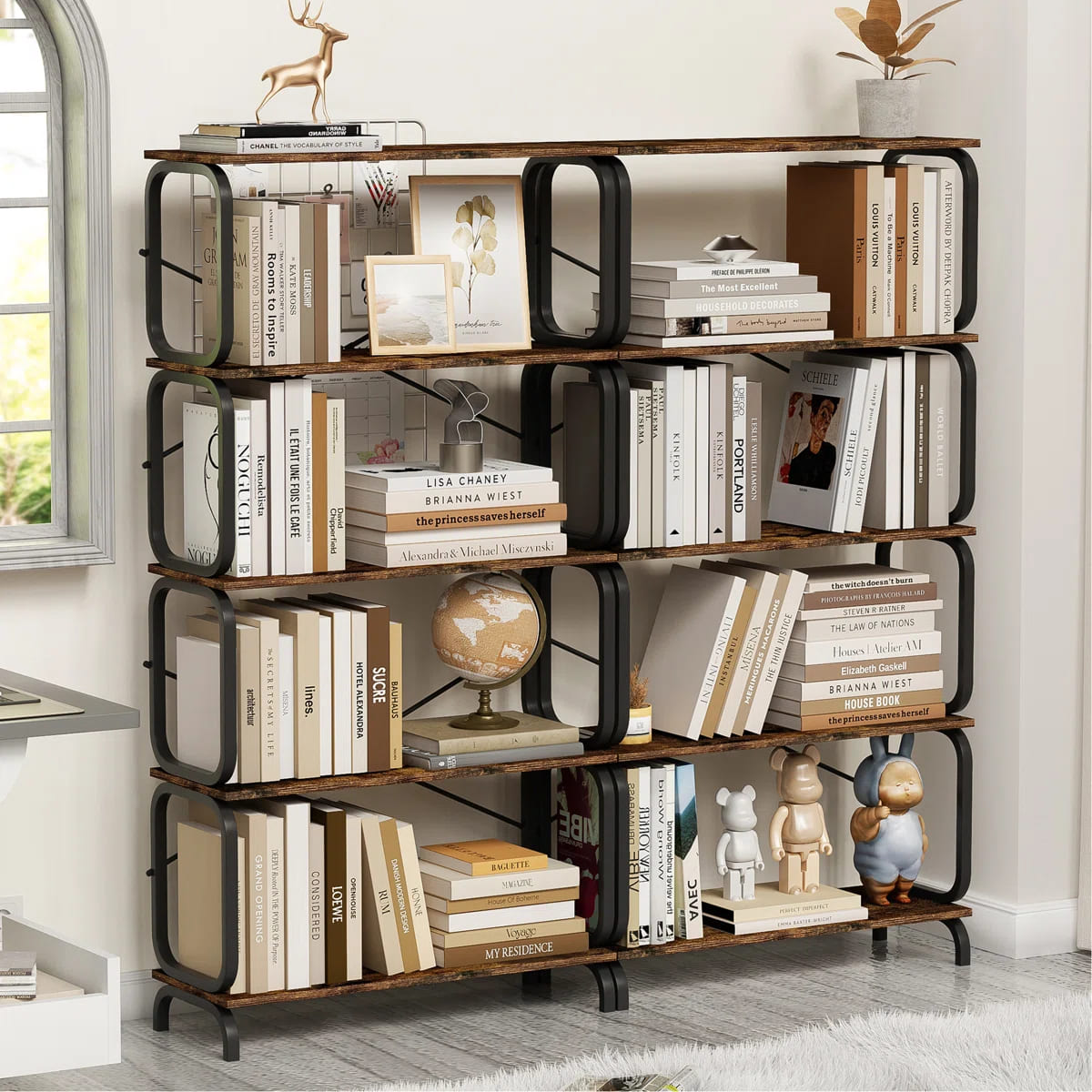 کتابخانه مدرن ترکیب ام دی اف و فلز چهار طبقه رنگ قهوه ای تیره | رنگ بندی دارد