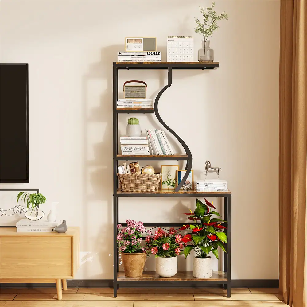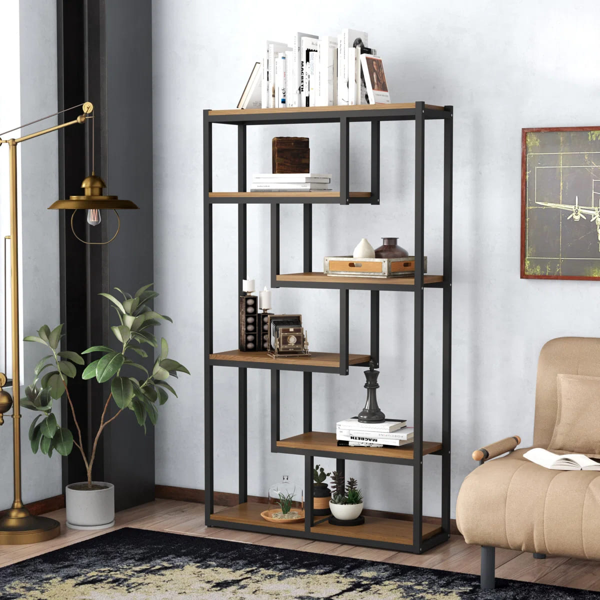 کتابخانه مدرن ترکیب ام دی اف و فلز 6 طبقه رنگ قهوه ای روشن | رنگ بندی دارد