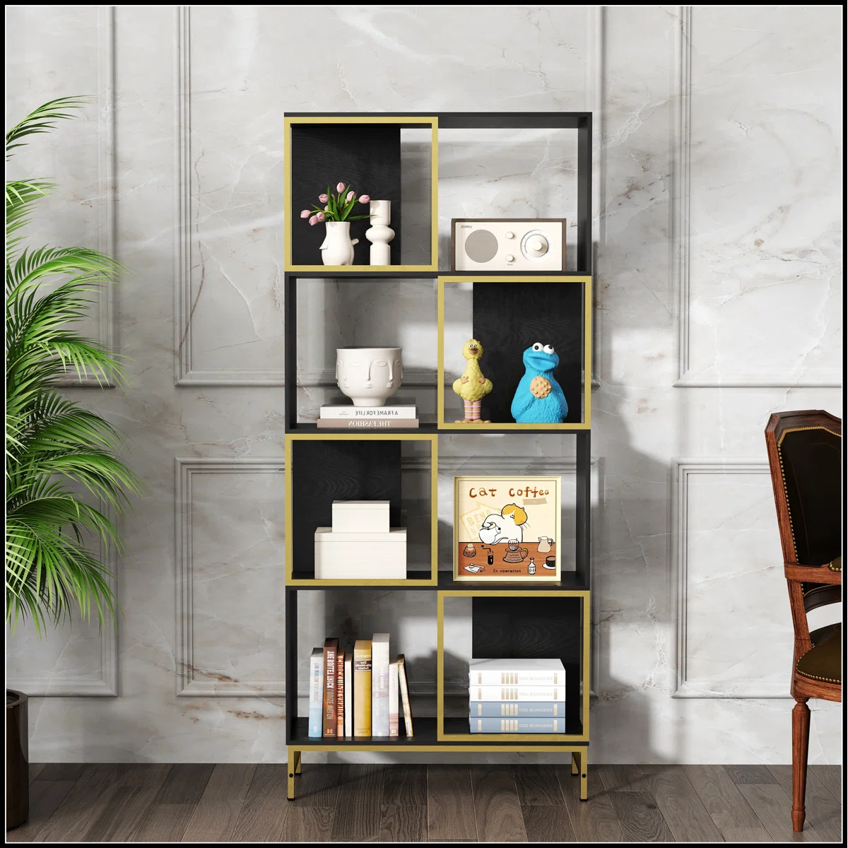 کتابخانه مدرن ترکیب ام دی اف و فلز 6 طبقه رنگ مشکی | رنگ بندی دارد
