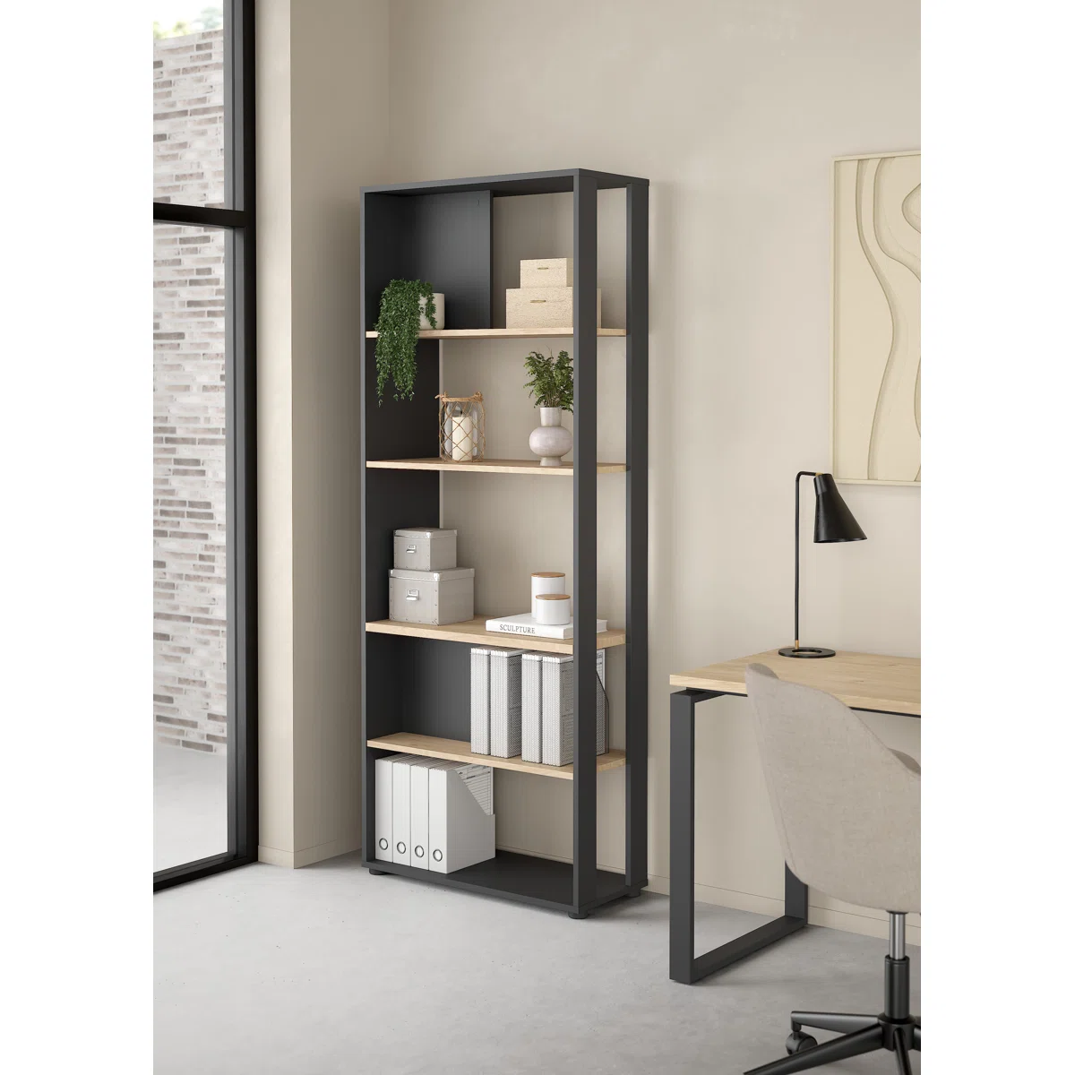 کتابخانه مدرن ترکیب ام دی اف و فلز 5 طبقه رنگ مشکی | رنگ بندی دارد