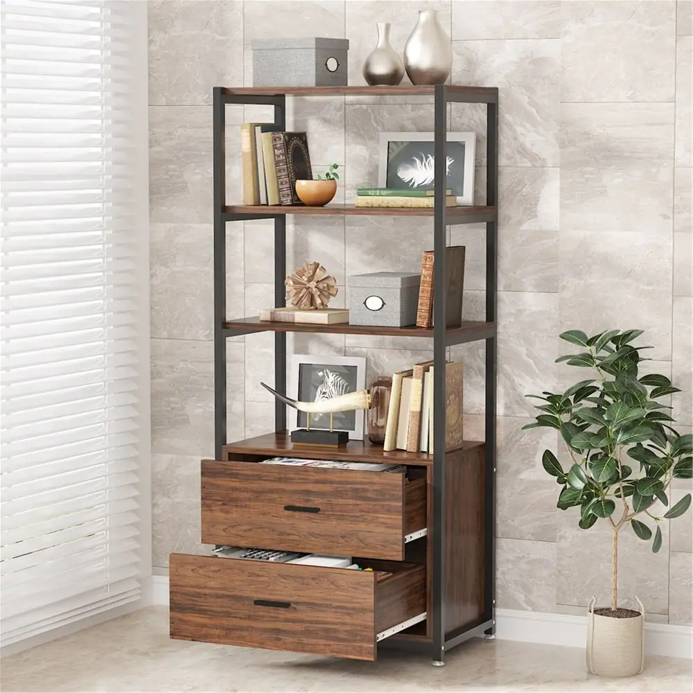کتابخانه مدرن ترکیب ام دی اف و فلز 4 طبقه کشو دار رنگ قهوه ای تیره | رنگ بندی دارد