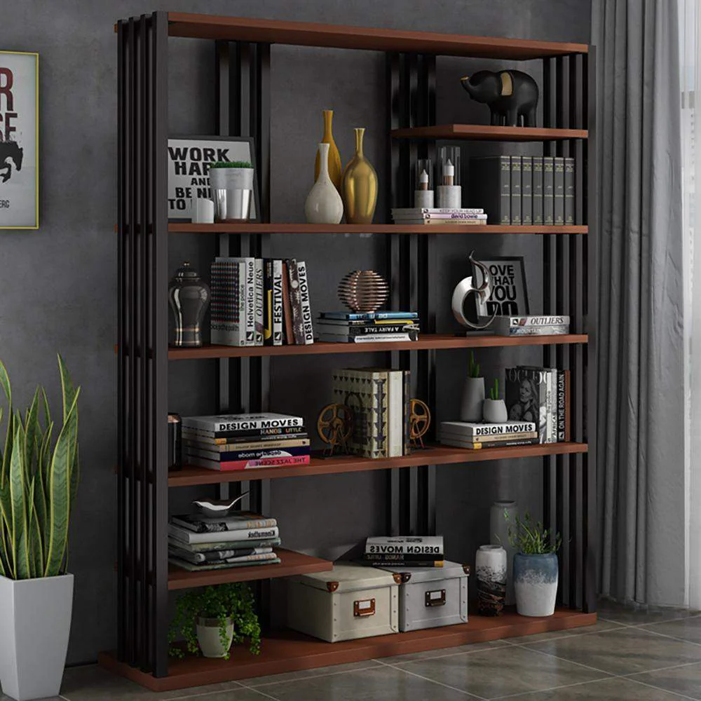 کتابخانه مدرن ترکیب ام دی اف و فلز شش طبقه رنگ قهوه ای تیره | رنگ بندی دارد
