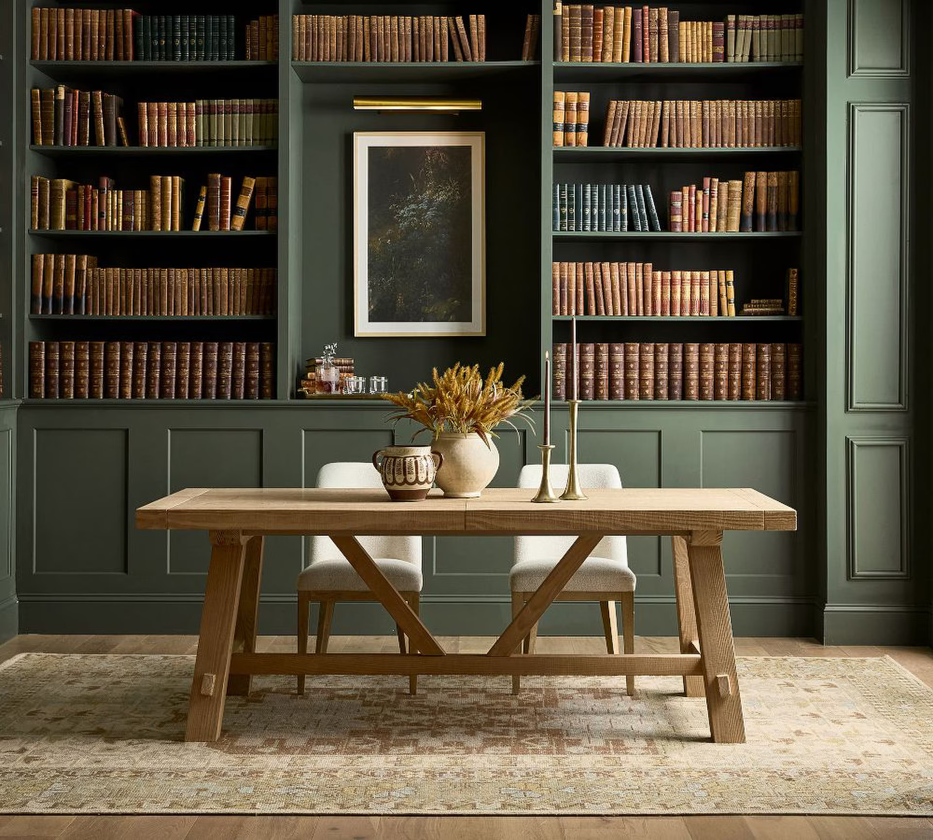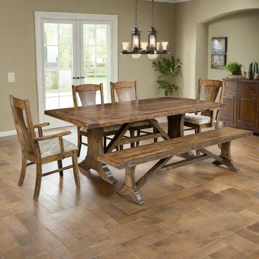 میز نهارخوری روستیک تمام چوب با پایه های با فضای ذخیره رنگ بلوطی | رنگبندی دارد