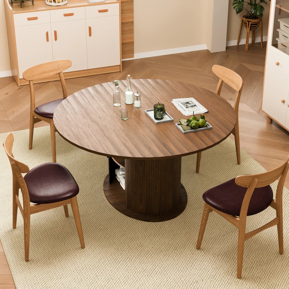 میز نهارخوری روستیک دایره ای شکل 4 نفره رنگ قهوه ای تیره | رنگبندی دارد