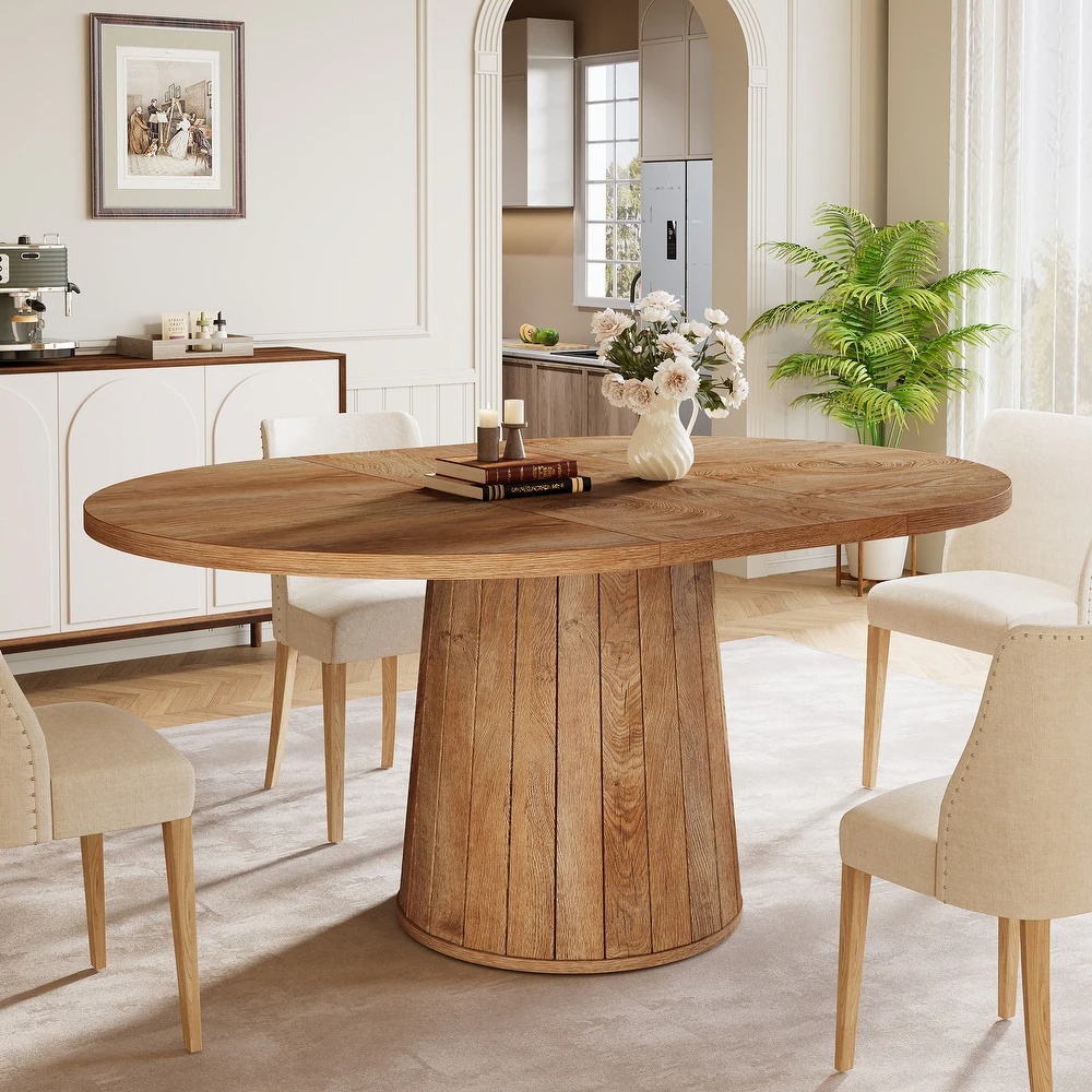 میز نهارخوری روستیک دایره ای شکل رنگ قهوه ای روشن | رنگبندی دارد