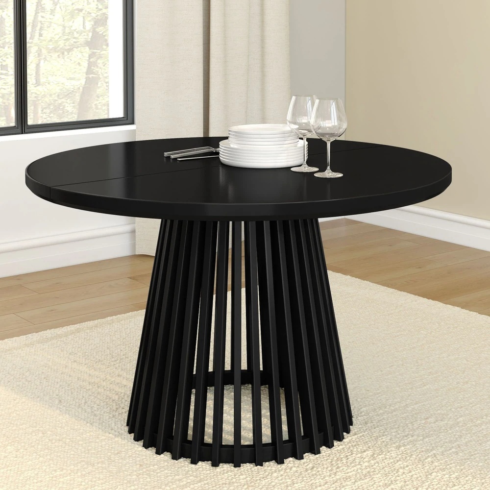 میز نهارخوری روستیک کوچک و کم جا طرح دایره رنگ مشکی براق | رنگبندی دارد