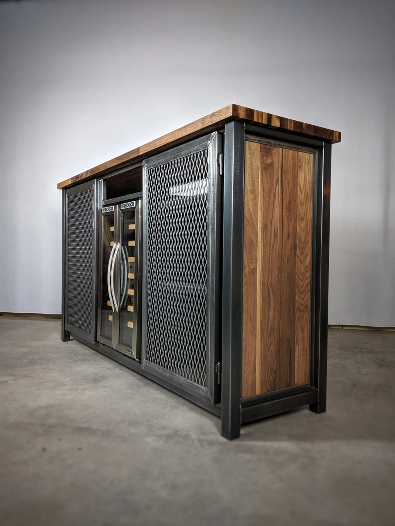 پیشکافی بار مینی مدرن ترکیب چوب و فلز رنگ قهوه ای روشن | رنگ بندی دارد