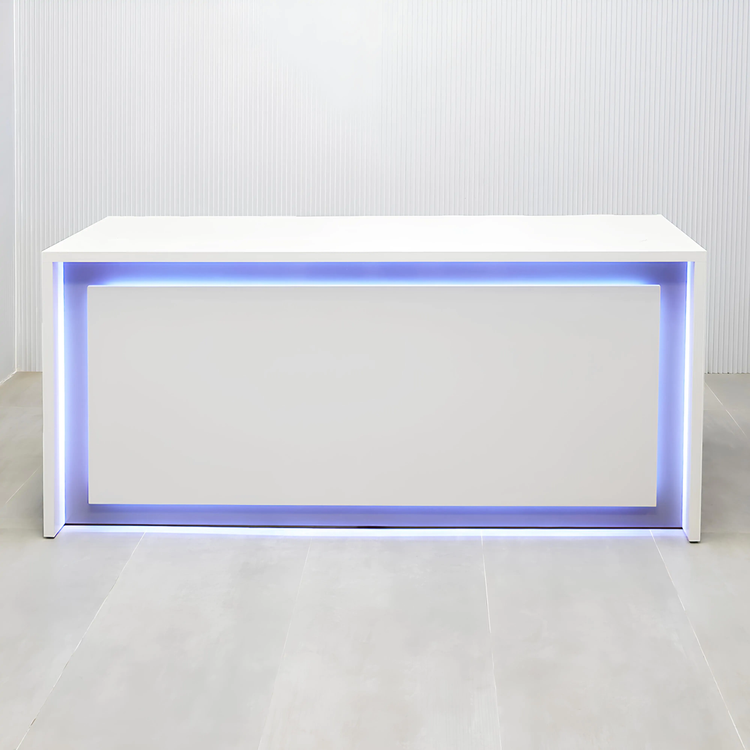 میز پیشخوان فروشگاهی طرح چوب ام دی اف رنگ سفید با نور پردازی | رنگ بندی دارد