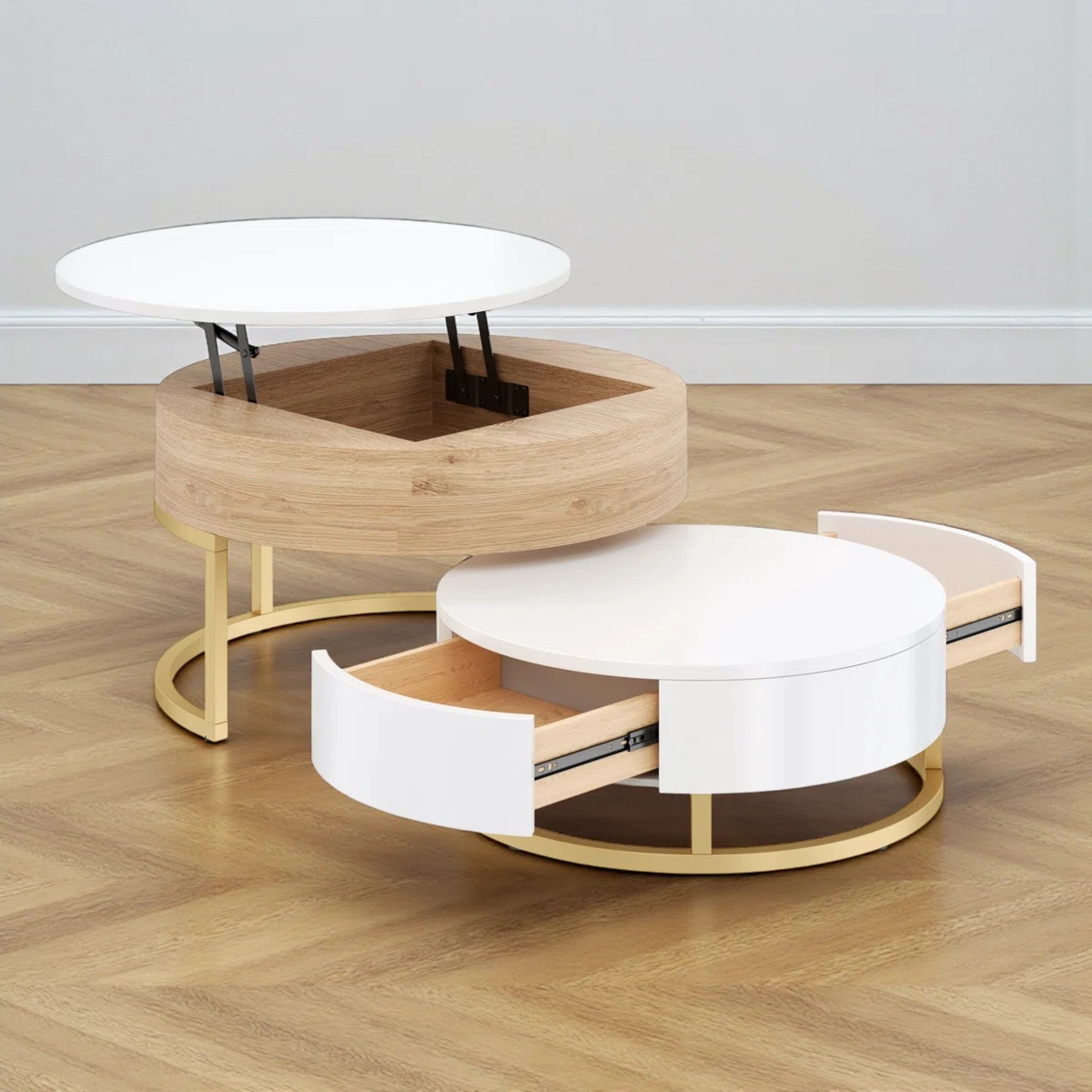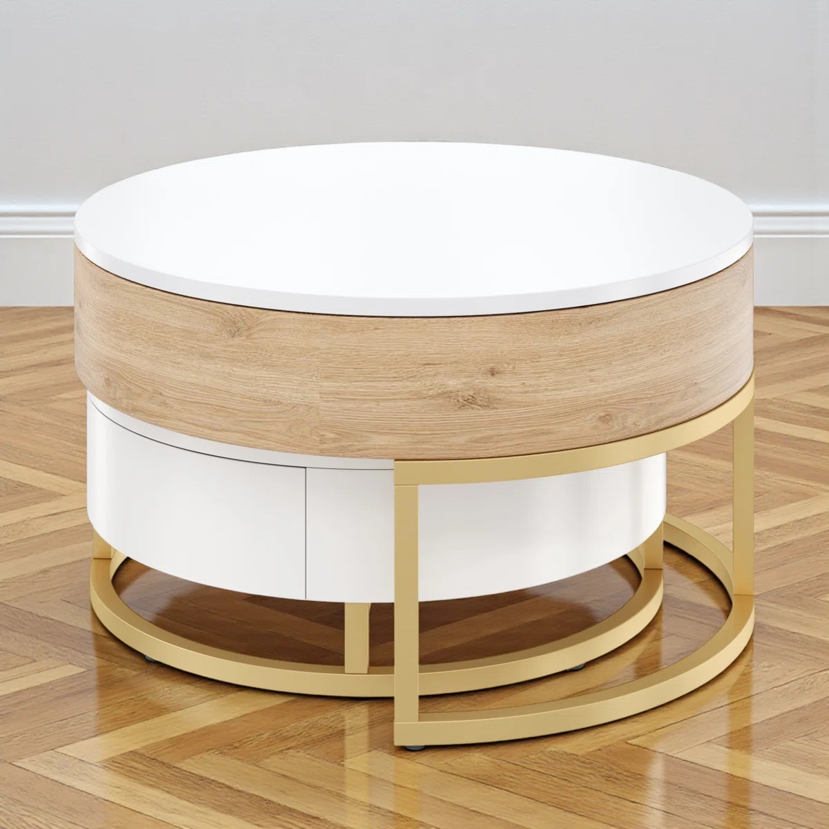 جلو مبلی دو تیکه مدرن ام دی اف با پایه فلزی کشو دار دو رنگ سفید بلوطی | رنگ‌بندی دارد