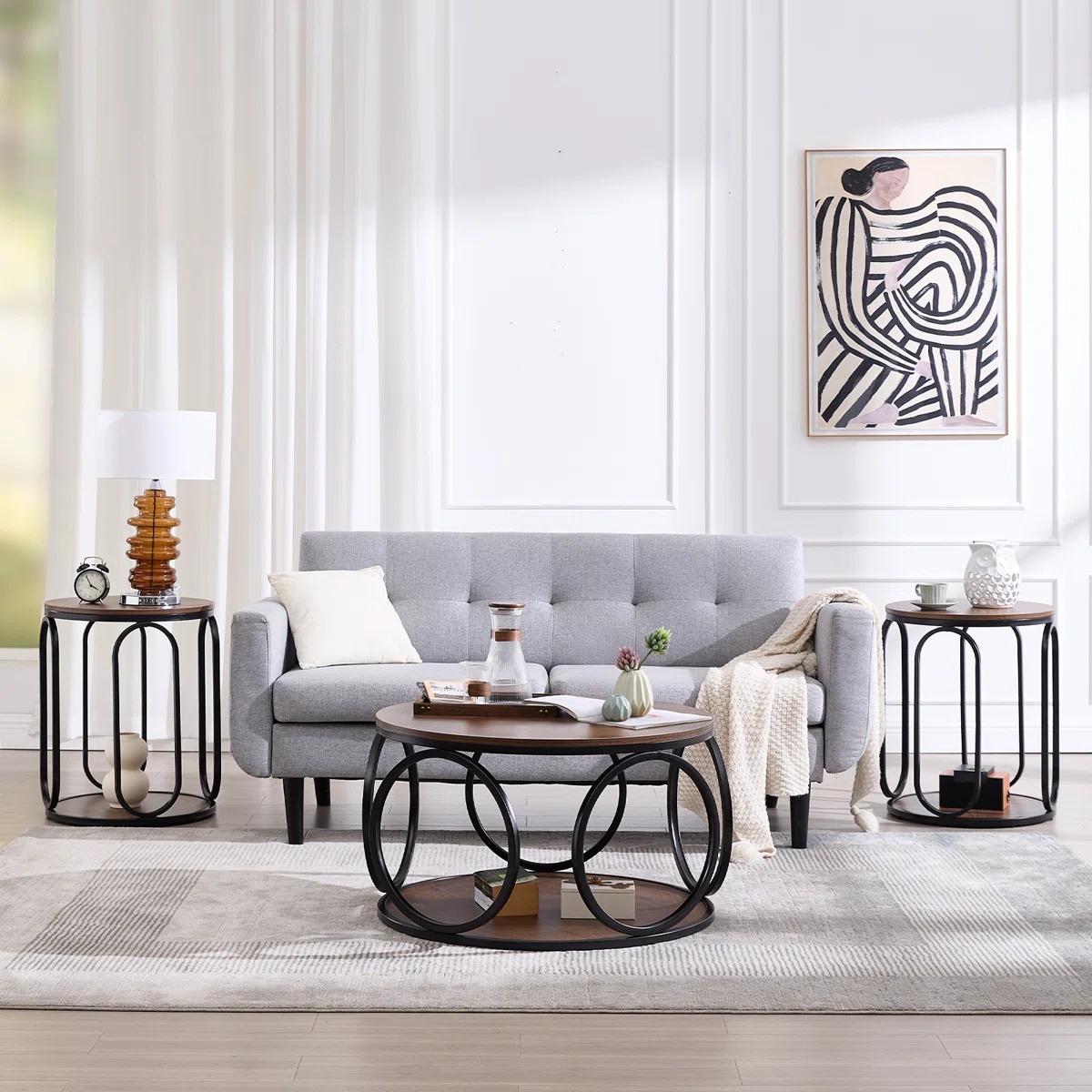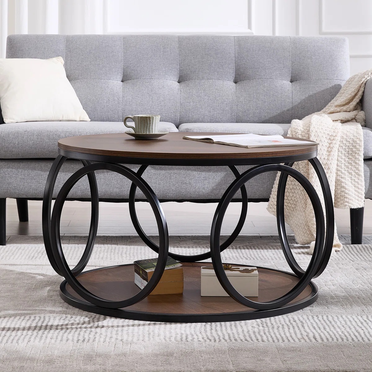 جلو مبلی مدرن دایره ای چوب و فلز رنگ قهوه ای تیره | رنگ‌بندی دارد