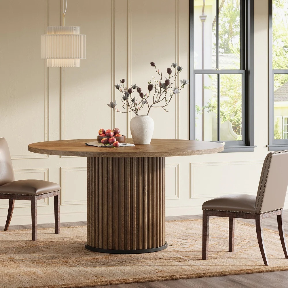 میز نهارخوری روستیک دایره ای شکل رنگ قهوه ای روشن | رنگ‌بندی دارد