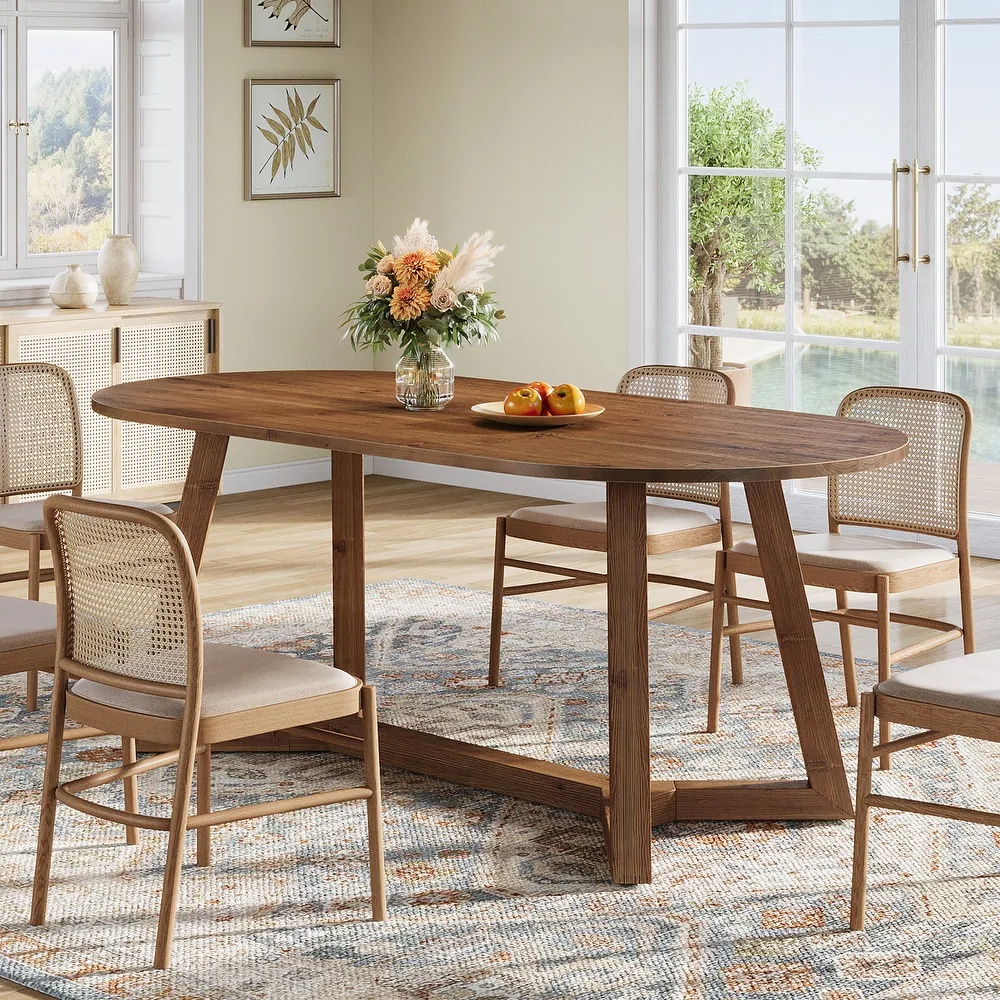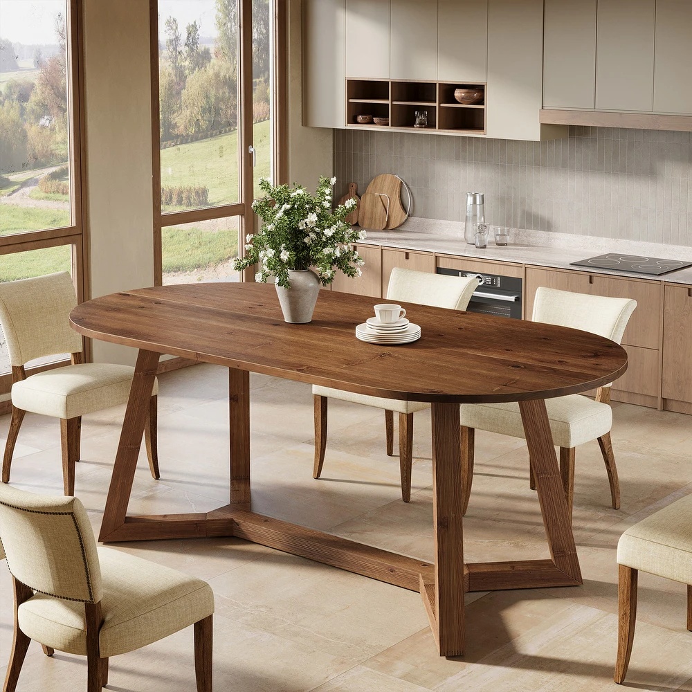 میز نهارخوری روستیک بزرگ 8 نفره رنگ قهوه ای تیره | رنگ‌بندی دارد