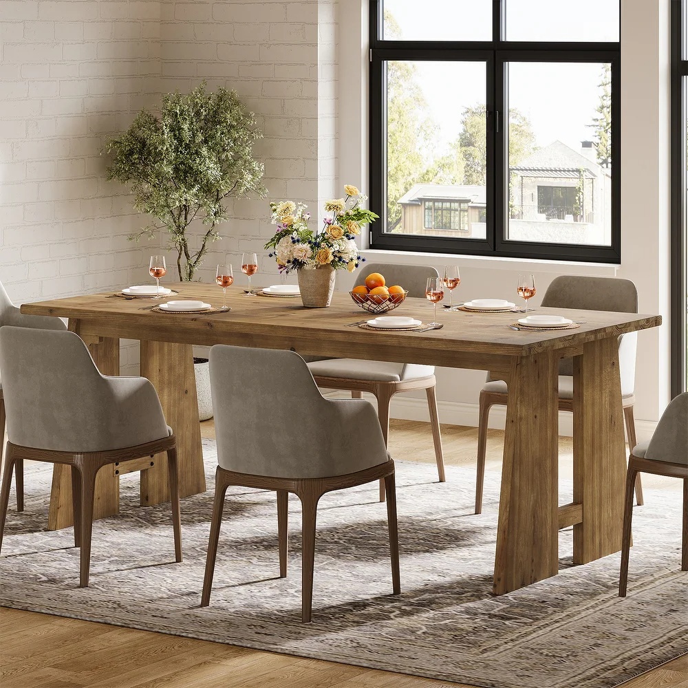 میز نهارخوری روستیک بزرگ 8 نفره تمام چوب رنگ بلوطی | رنگ‌بندی دارد