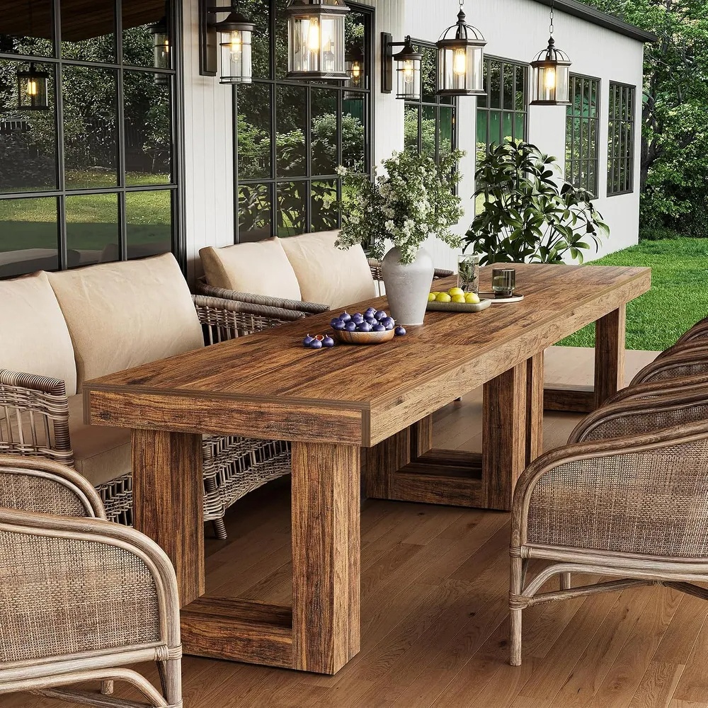 میز نهارخوری روستیک بزرگ تمام چوب رنگ قهوه ای تیره | رنگ‌بندی دارد