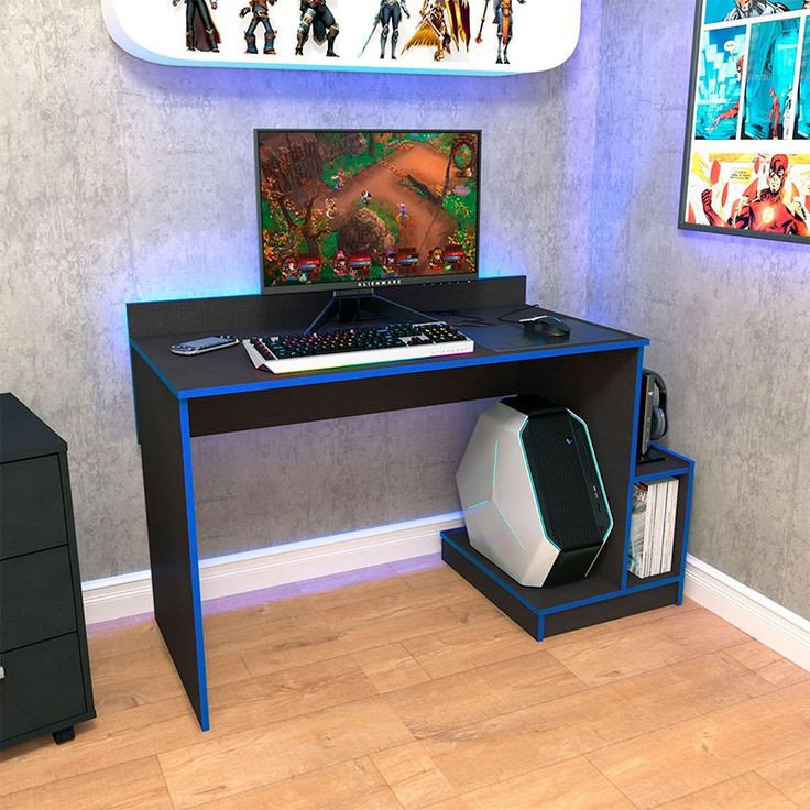 میز گیمینگ ام دی اف مدرن جدید مشکی نوار آبی رنگ بندی دارد ضمانت نامه کتبی دارد