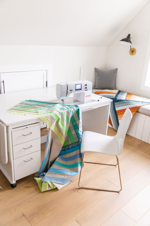 میز خیاطی با سطح وسیع و کشو جانبی برای استفاده چندمنظوره