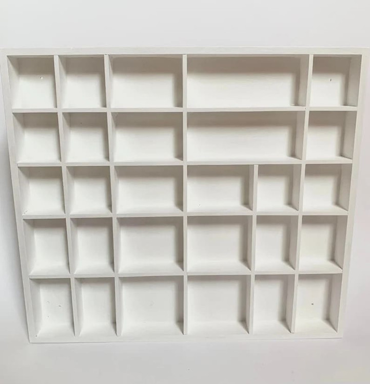 ویترین سفید فروشگاهی با باکسهای مربعی