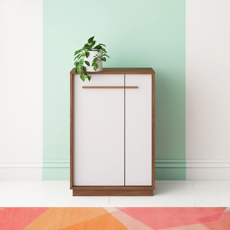 جاکفشی مدرن و مینیمال ام دی اف دو رنگ سفید و قهوه ای تیره مناسب برای فضای کوچک| رنگ بندی دارد