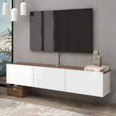 میز تلویزیون دیواری مدرن ام دی اف دو رنگ سفید گردویی | رنگ بندی دارد