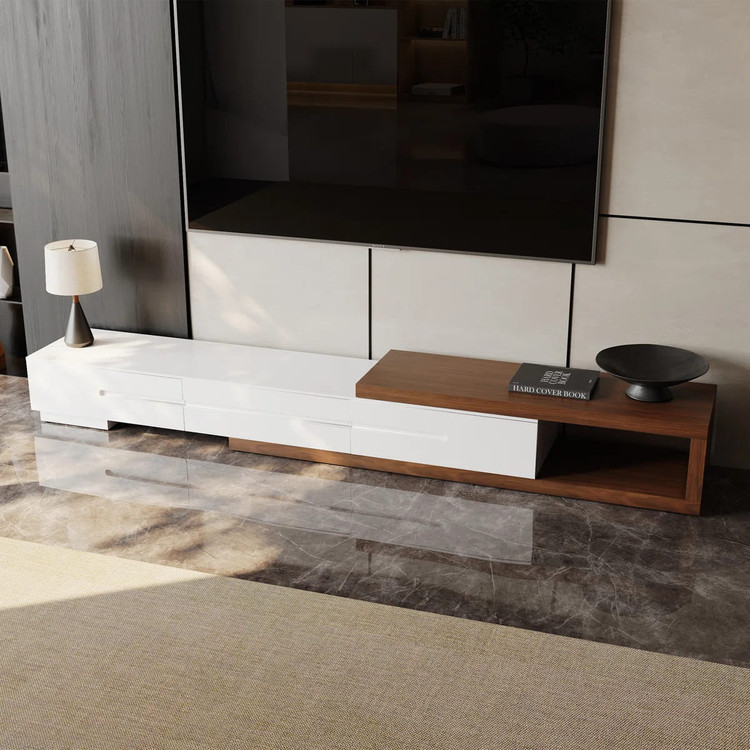 میز تلویزیون مدرن طرح ام دی اف دو رنگ سفید گردویی | رنگ بندی دارد