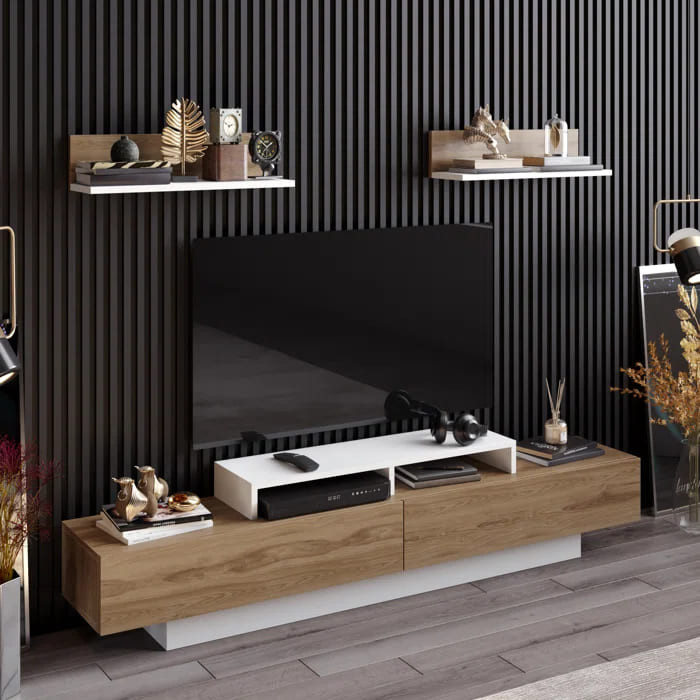 میز تلویزیون مدرن ام دی اف دو رنگ سفید و بلوط | رنگ بندی دارد